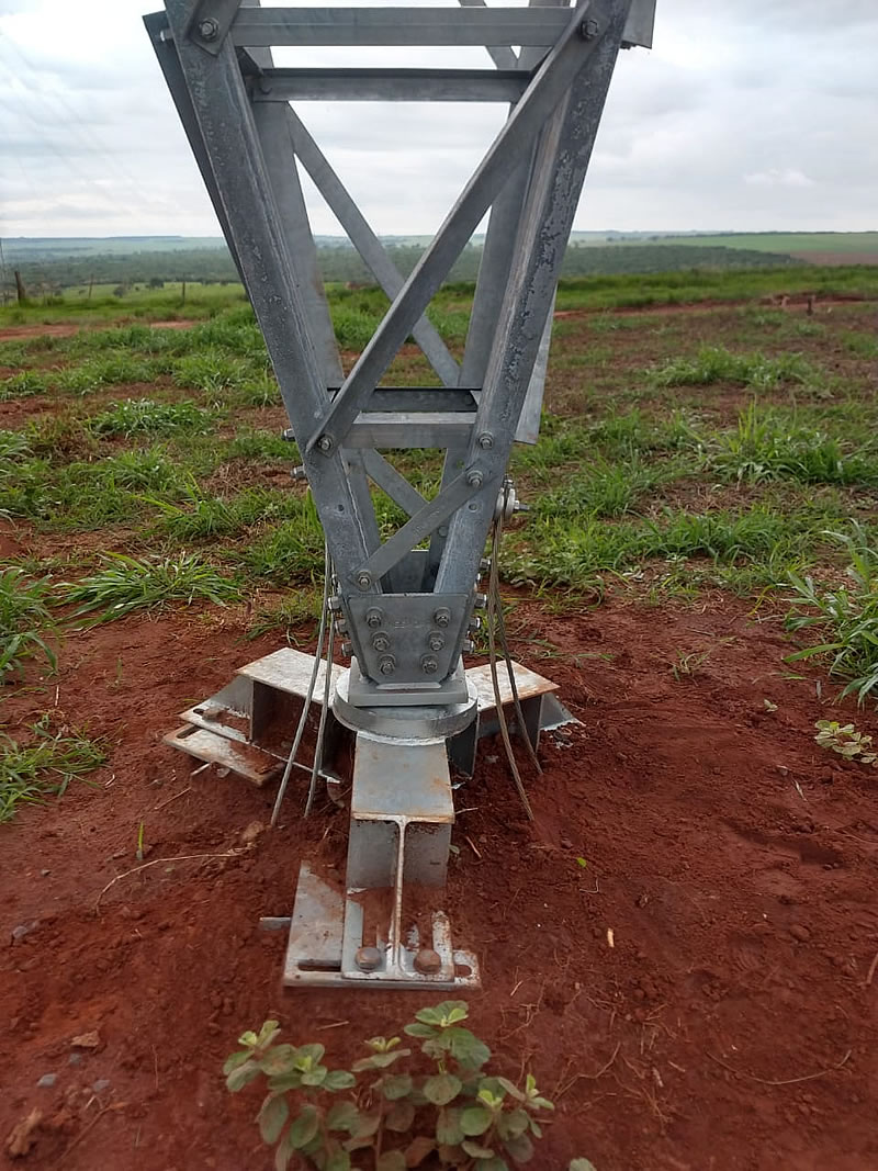 Projetamos e instalamos, para fazer interface entre a fundação e torre estaiada.