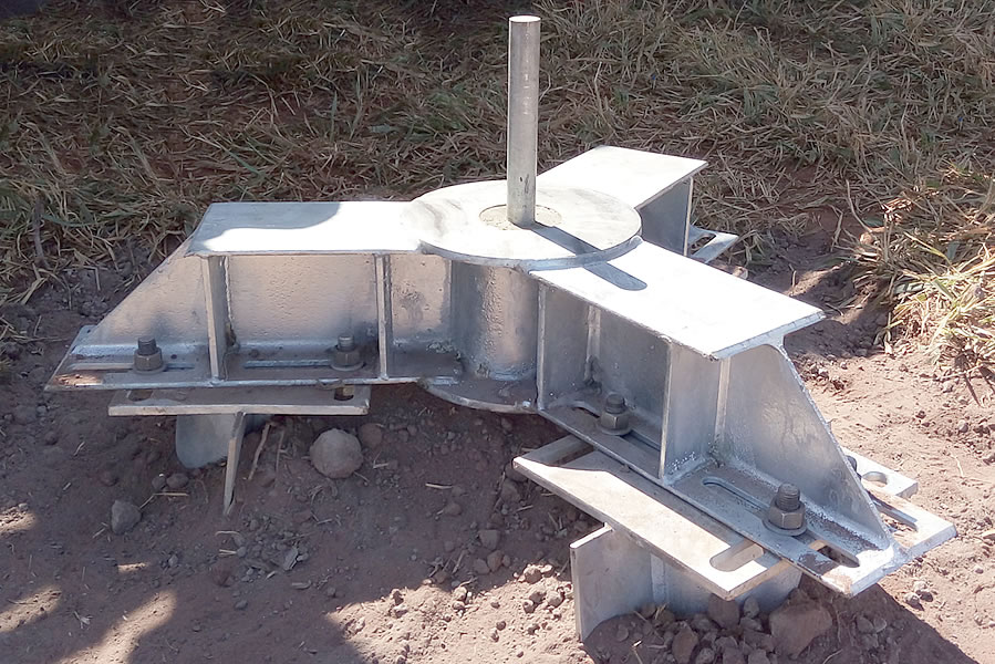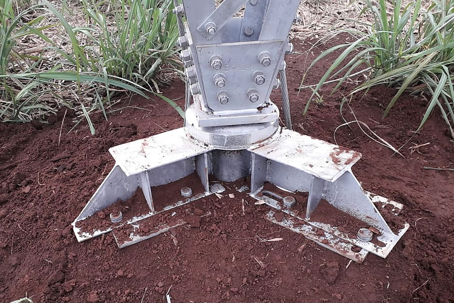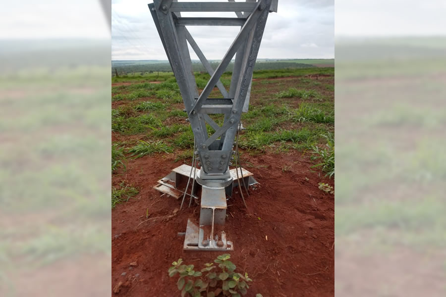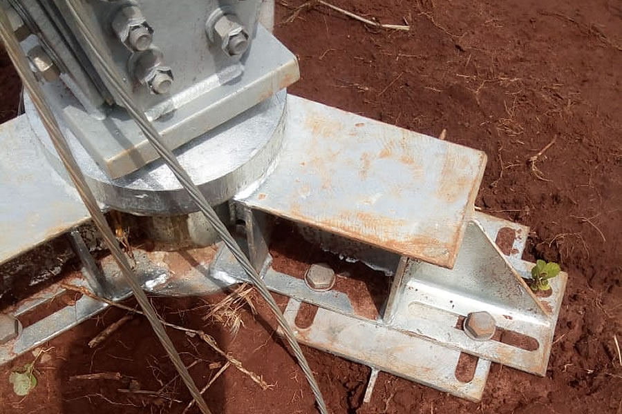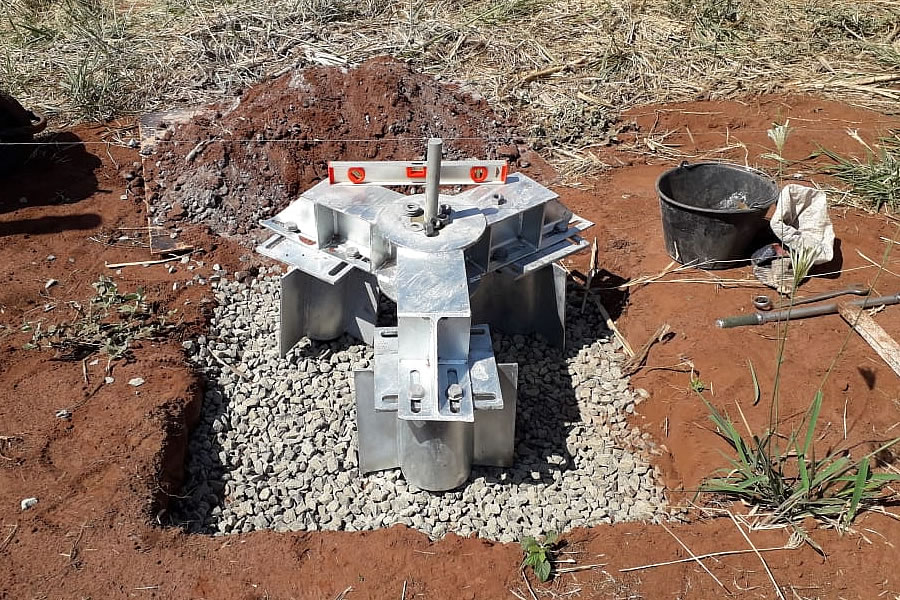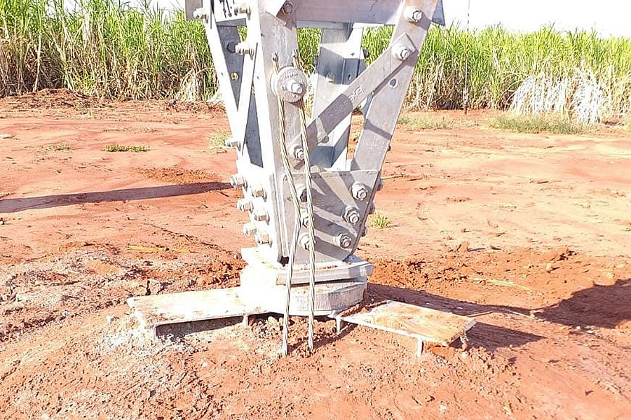 Projetamos e instalamos Sapatas Metálicas, uma interface entre a torre estaiada e a fundação do Mastro Central.