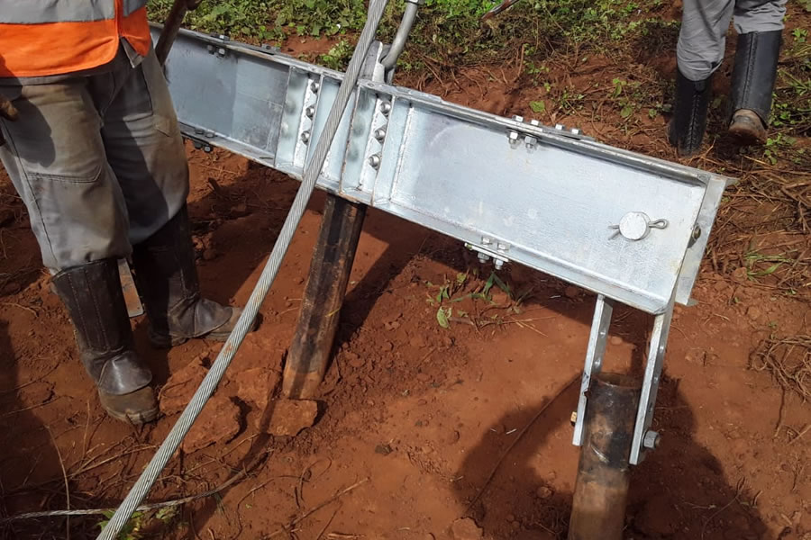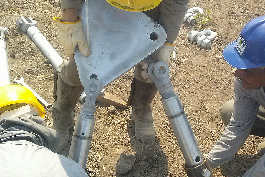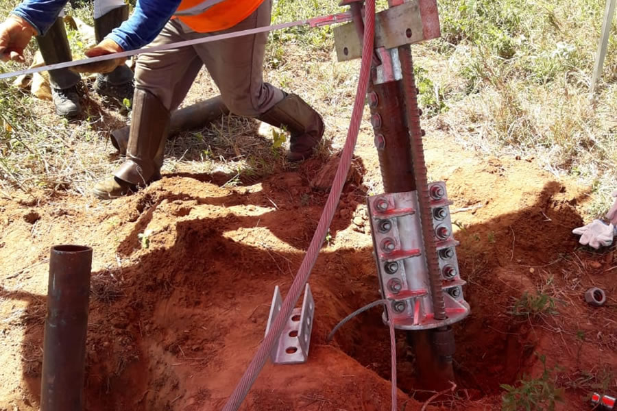 Projetamos e instalamos interfaces de adaptação para dois ou três Tirantes Helicoidais, onde a carga é distribuida adequadamente entre eles, com o objetivo de atender cargas muito elevadas ou solos com baixa resistência.